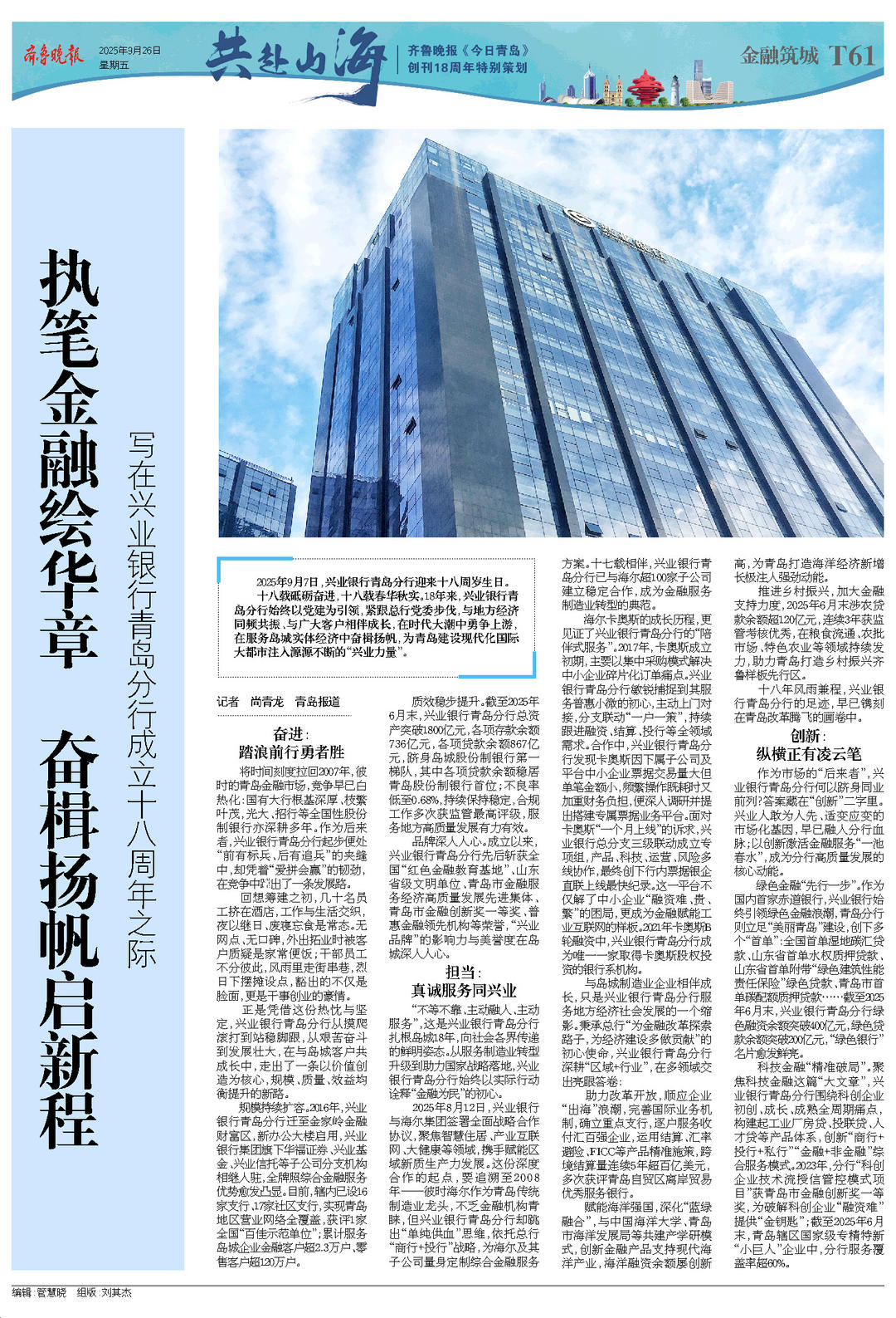 2025年9月7日,兴业银行青岛分行迎来十八周岁生日。